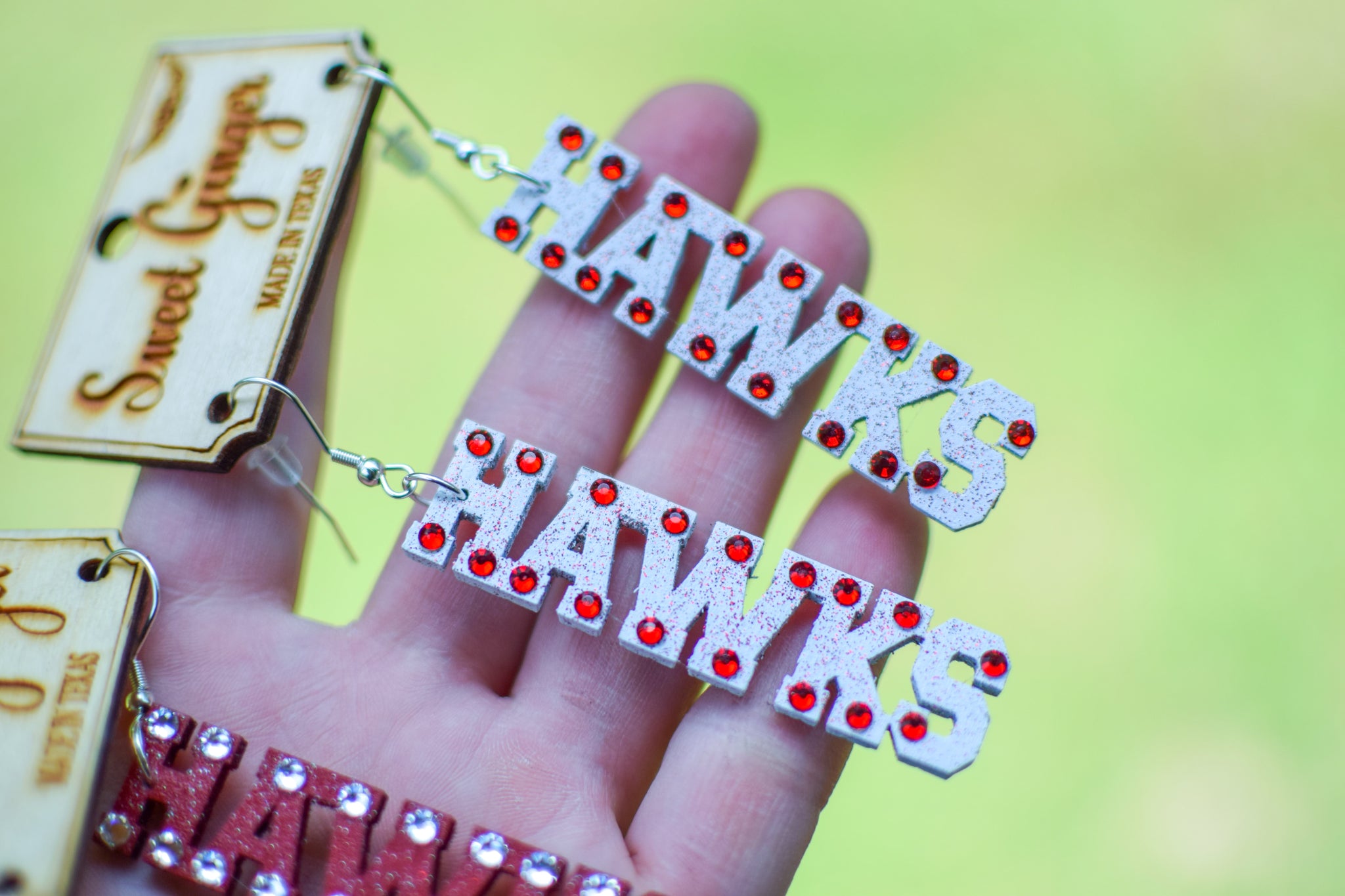 please pick drop down menu for options. There are 2 choices. White with red stones and red with clear stones. They both are covered in a shimmer top coat.