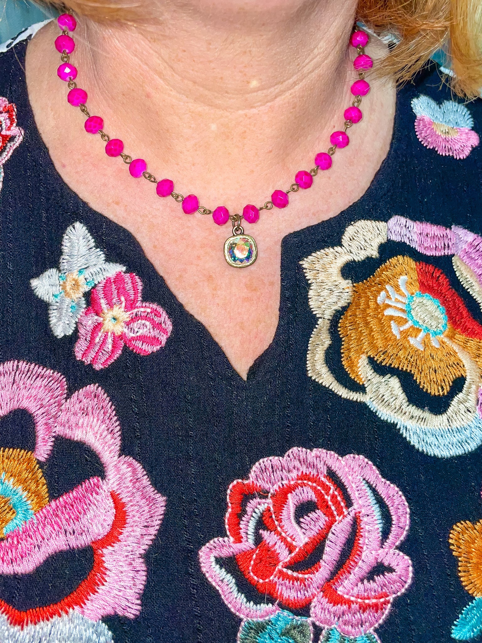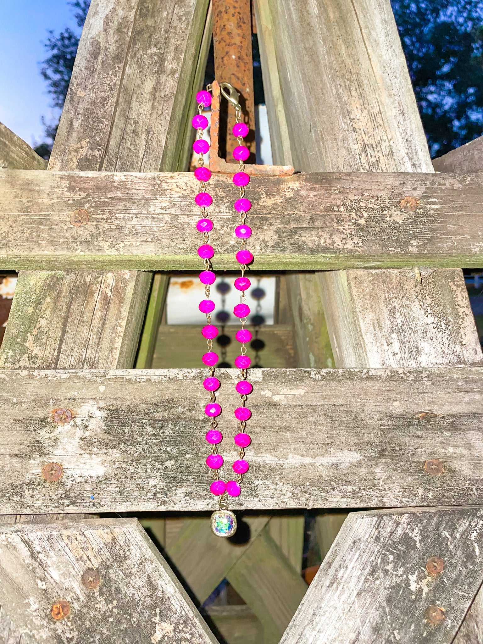 Hot pink choker, with a square AB stone and setting. Perfect for date night 😍